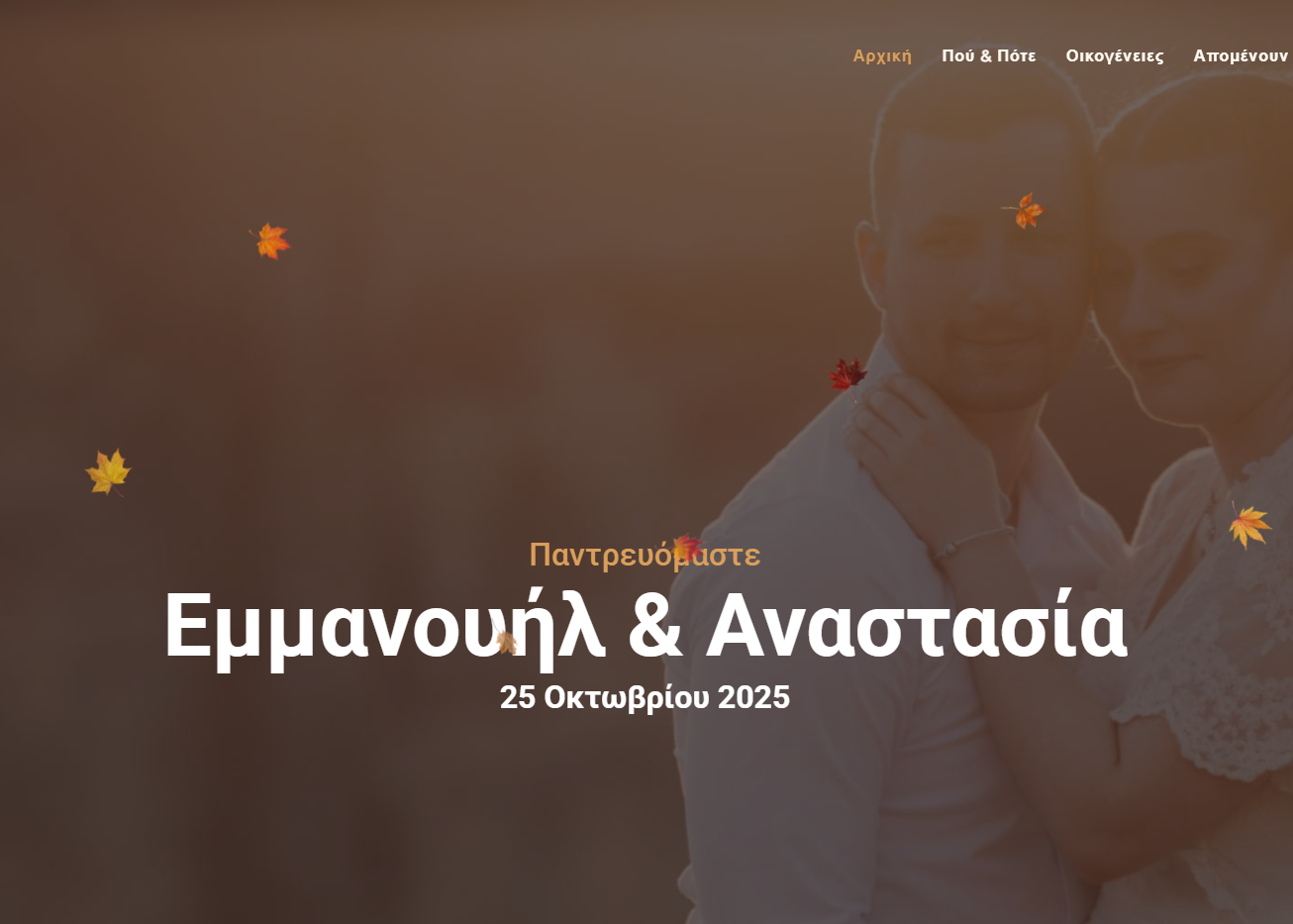 Επικοινωνήστε μαζί μαςΕίτε πρόκειται για γάμο, βάπτιση, πάρτι ή ένα εταιρικό γεγονός, τα πρότυπά μας μετατρέπουν τις πιο σημαντικές σας στιγμές σε ζωντανές ιστοσελίδες. Δημιουργήστε έναν χώρο όπου οι καλεσμένοι σας θα μοιράζονται τη χαρά, θα συγκινούνται και θα νιώθουν ότι είναι μέρος της ιστορίας σας από την πρώτη κιόλας ματιά.